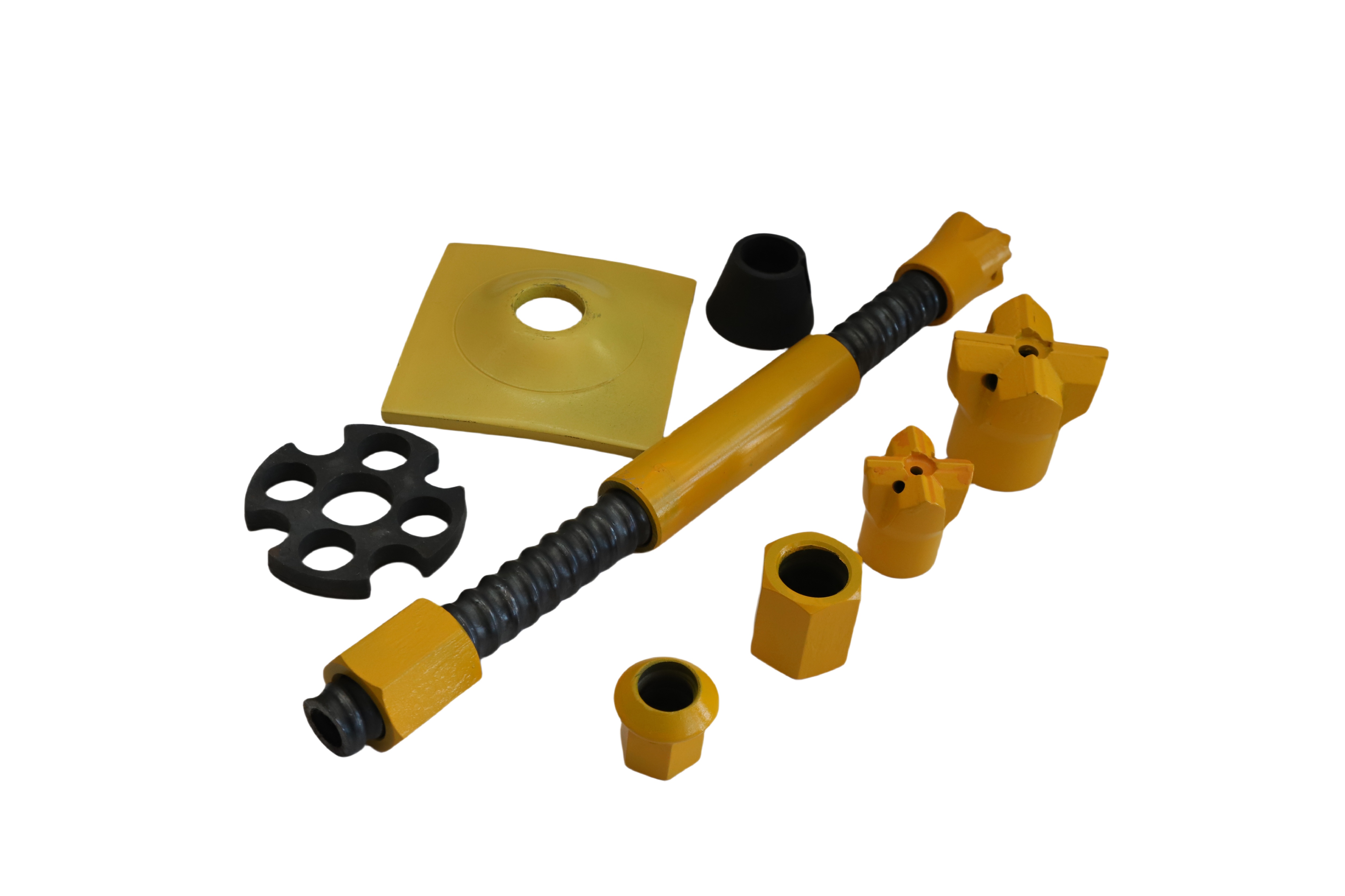 自鉆式錨桿主要由中空錨桿體、螺母、墊板、連接套、居中器和鉆頭組成,集鉆進、注漿、錨固功能為一體,適用于破碎、難成孔圍巖。